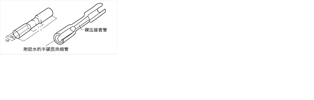 压接管:无氧铜管(电气锡镀) 热缩管外层:电子线架桥半硬质交联聚烯烃树脂 热缩管内层:热熔融性胶水 |